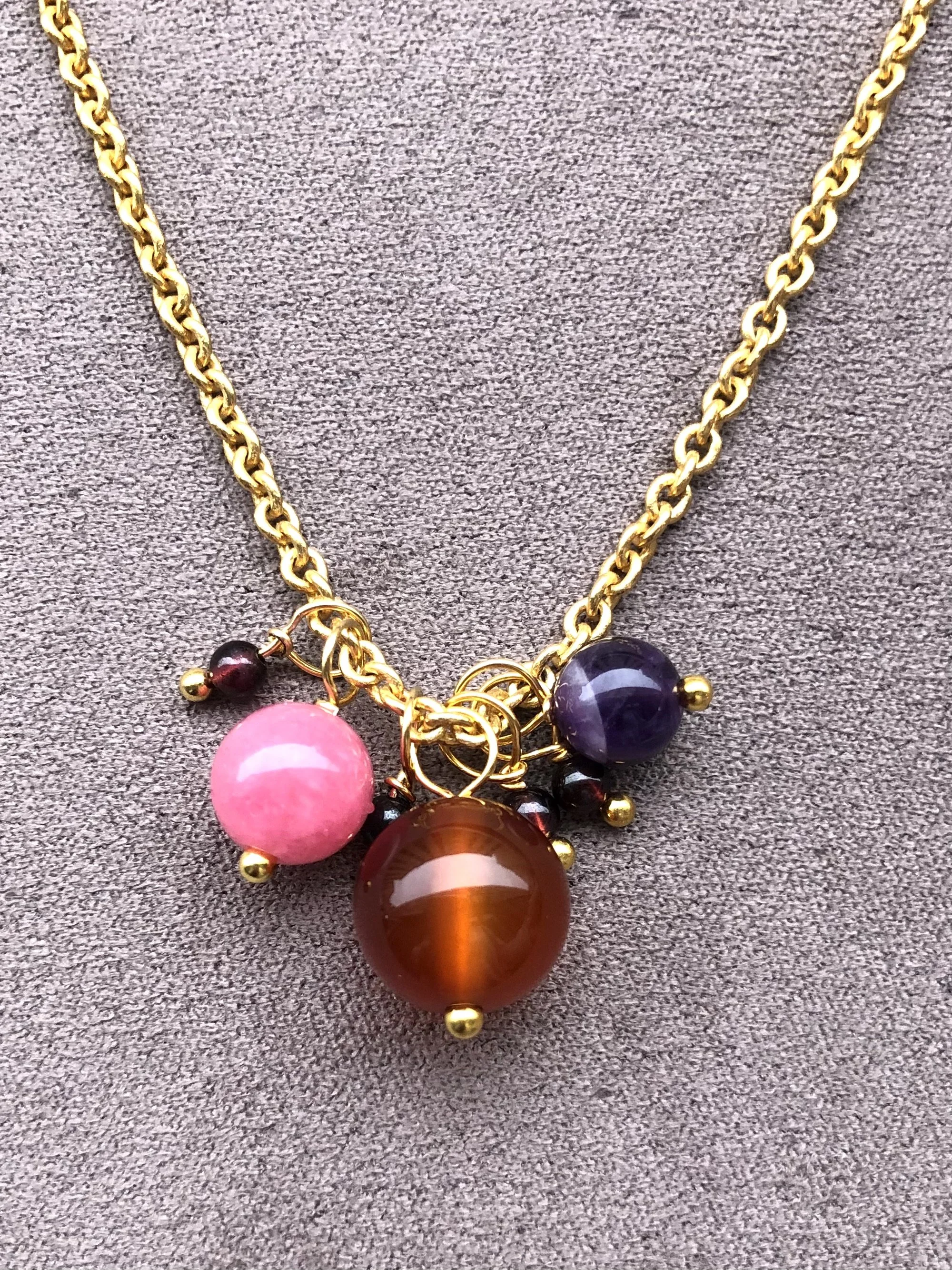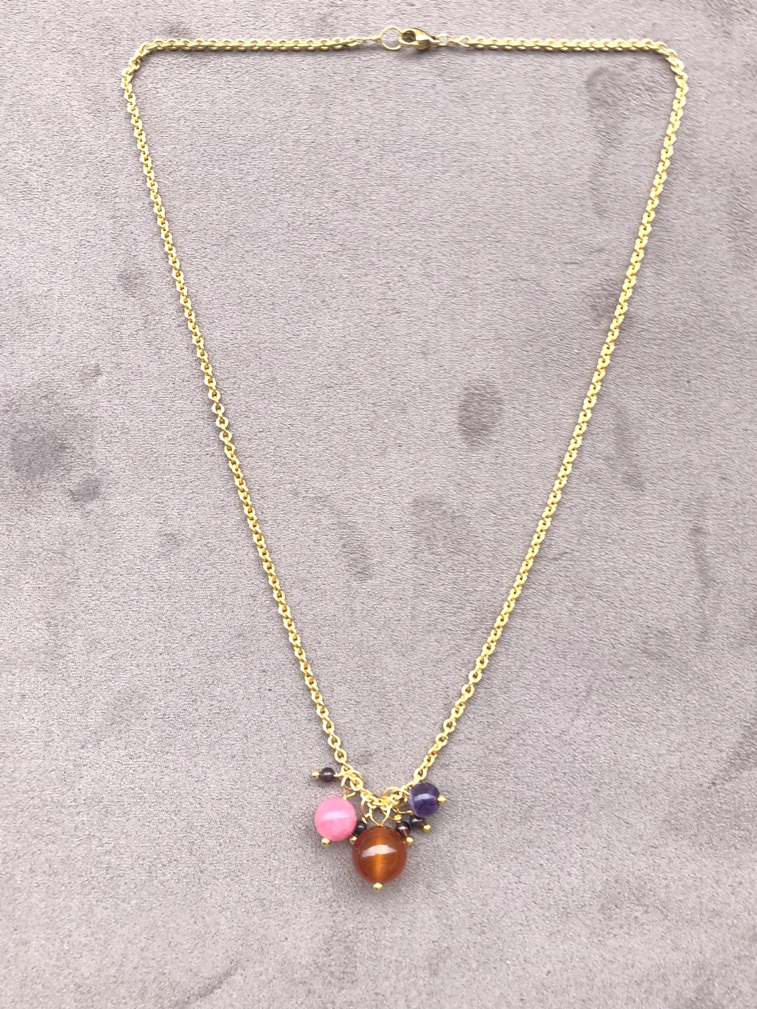 Une nouvelle paire de boucles d’oreilles mini, mais +. Composé d’une améthyste sertie, de jade de Birmanie et de spinelles rose ainsi que du jade. Sur un crochet plaqué or